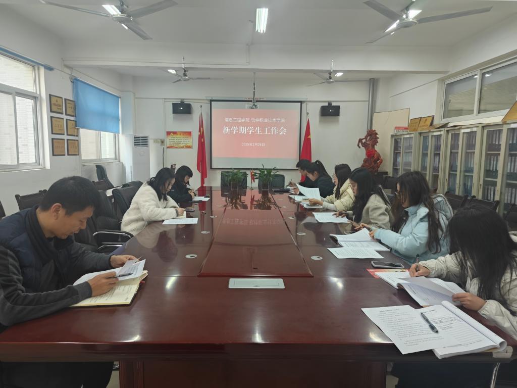 本站讯 为全面部署新学期学生工作,明确工作方向,提升学生工作质效,在新学期开学之际,信息工程学院(软件职业技术学院)扎实开展各项学生工作。 2月28日,学院召开了新学期学生工作会议。学院党总支书记武莹、党总支副书记陈茜以及全体辅导员参加了会议。会议由学院团总支书记贺钰主持。