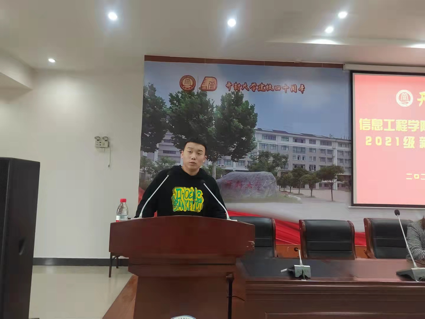 优秀学生代表、2020年度国家奖学金获得者,2019级计算机应用专业何浩祥同学为同学们分享了自己学习和生活经验,鼓励“信息学子”勇于奋斗,拥有一个开心、充实、丰富多彩的大学生活。