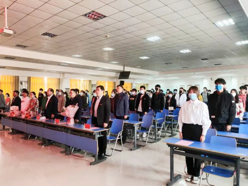 宣讲活动在激昂雄壮的国歌声中开始。与会来宾、领导和师生共同默哀悼念在抗击新冠疫情斗争中牺牲的烈士和逝世同胞。储书记代表学校向李国杰、盖颖、戚冠斌医生的莅临表示了热烈的欢迎,向戚冠斌医生一起白衣执甲、逆行出征的医护人员们表达了崇高的敬意,并号召老师们和同学们学习戚冠斌医生等抗疫战士的英雄精神;学习他们对党和人民的坚定信念;学习他们勇于担当、无私奉献的可贵精神;学习他们坚持不懈、埋头苦干的精神品质;学习他们攻坚克难克敌制胜的过硬本领,自觉的把“小我”融入“大我”积极磨炼,锻炼能力,争当先进、勇建新功,以不懈的奋斗为青春增添一抹亮丽的底色,以优异的成绩向建校40周年献礼。储建新向河南大学淮河医院援鄂医疗队赠送了书法家撰写的牌匾,淮河医院援鄂医疗队向bat365在线官方网站捐赠援鄂医疗队队员签名的医护服。