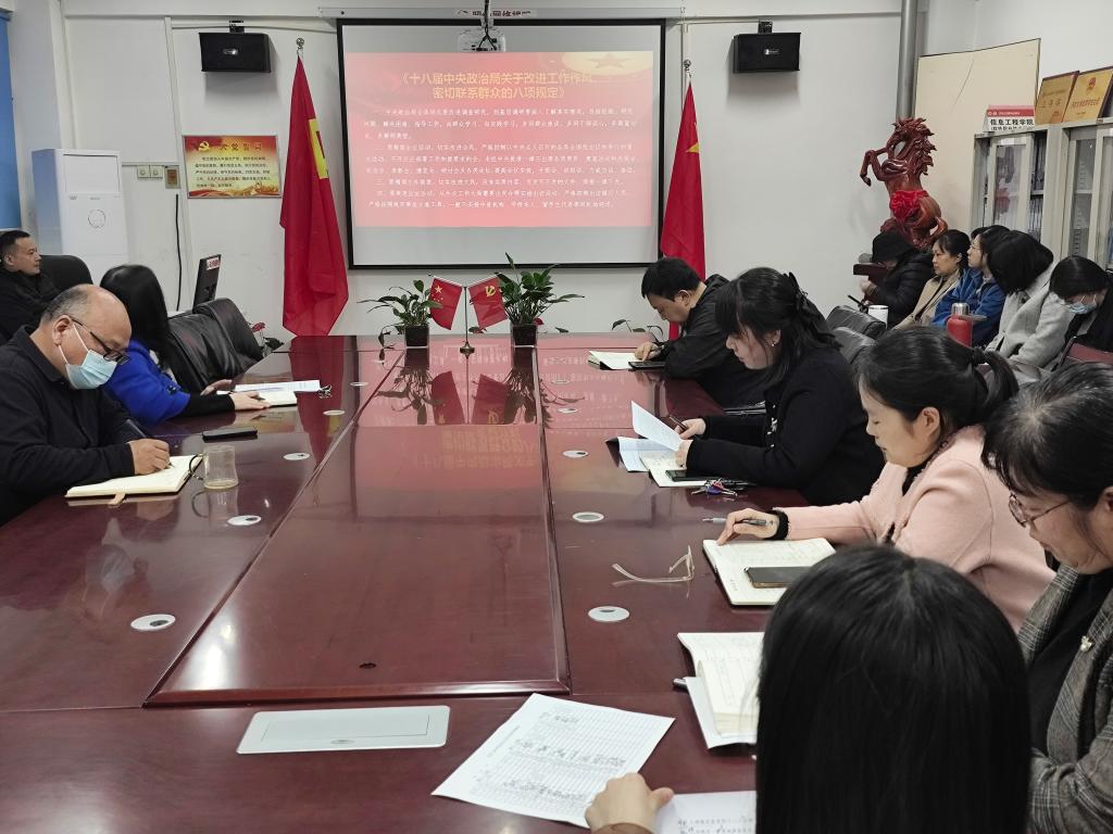 本站讯 为响应我校组织统战部要求,信息工程学院党支部于3月27日下午2:30,在3#321会议室开展了以《严守纪律规矩,中央八项规定精神践于行》为主题的党日活动,聚焦规范党内组织生活、落实党员发展工作细则,扎实推进党的组织建设。