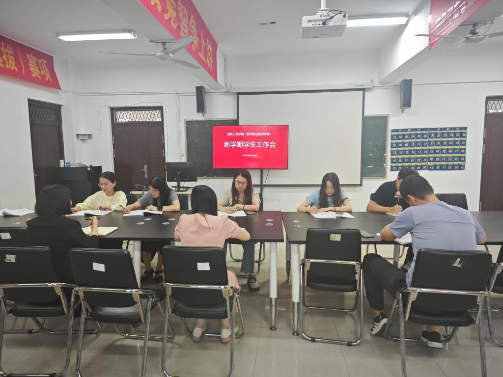 本站讯 8月29日下午,信息工程学院(软件职业技术学院)在3号楼309会议室召开新学期学生工作会。学院党总支书记武莹、副书记陈茜出席,全体辅导员参加,会议由团总支书记贺钰主持。