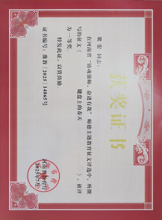 近日,河南省教育厅印发《关于公布“铸魂强师,奋进有我”师德主题教育征文、演讲比赛和师德师风优秀案例评选结果的通知》,我院在征文评选中荣获多项佳绩。其中,梁宏老师荣获一等奖,雷文杰老师荣获二等奖。