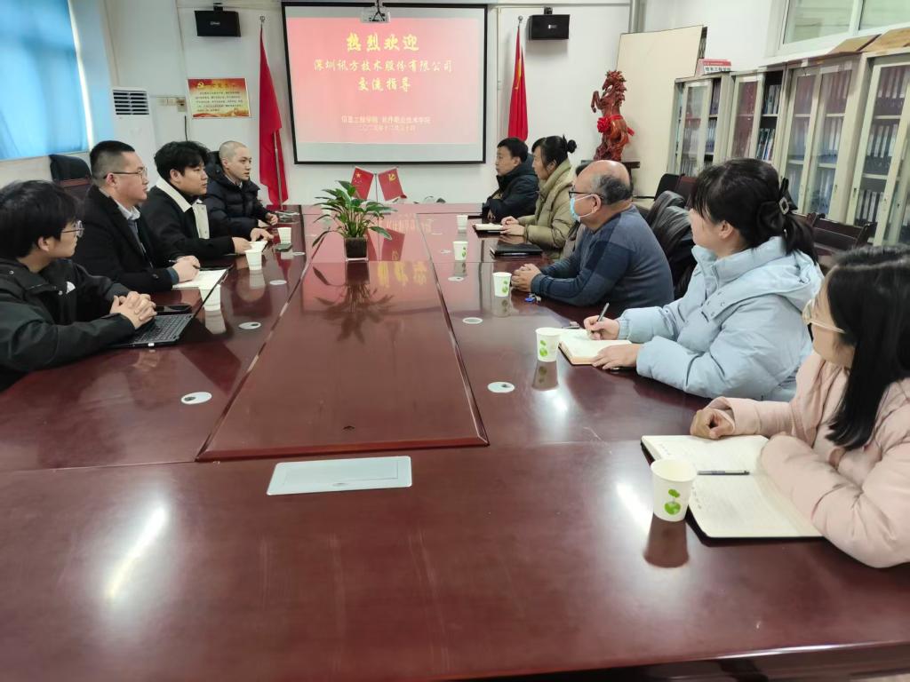 本站讯 2025年12月30日,深圳讯方技术股份有限公司人工智能产品部总监庄森、河南省市场部总监刘超、河南省产品总监王浩、河南省产品经理徐世伟一行到访bat365在线官方网站信息工程学院,就深化产教融合、推进协同育人开展专项座谈。学院党总支书记武莹、院长张新成及全体领导班子成员出席座谈,双方围绕多领域合作事宜达成深度共识。