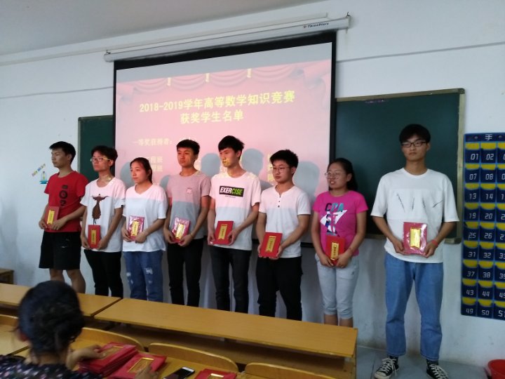 本站讯 523日下午,我校在3号楼202教室隆重召开2018年度全国大学生数学建模竞赛和我校20182019学年高等数学知识竞赛的颁奖大会。颁奖大会由数学教研部主任白水周同志主持,数学教研部全体教师参加了颁奖大会。