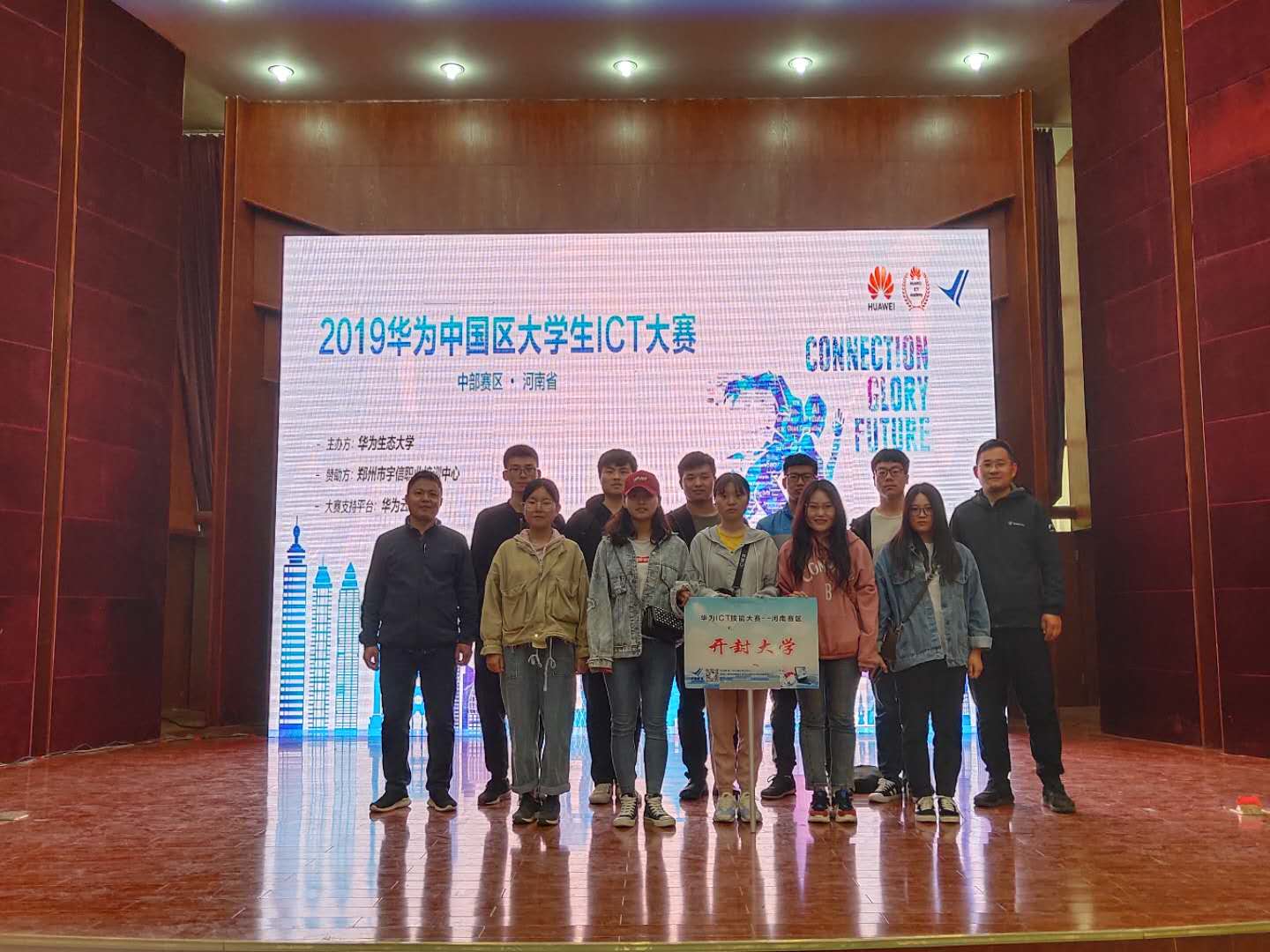 本站讯 近日,2019华为中国区大学生ICT大赛——中部赛区河南区实践赛在郑州落下帷幕。河南省40多支代表队近千名学生参加此次竞赛。我校信息工程学院学生在此次大赛中取得了优异成绩。其中郭晓玉、梁培雨、周少军三位同学获得二等奖,谢文莹、张洪岩、曾佑豪三位同学获得优胜奖。母军臣老师和付红杰老师获得“优秀辅导老师”称号。