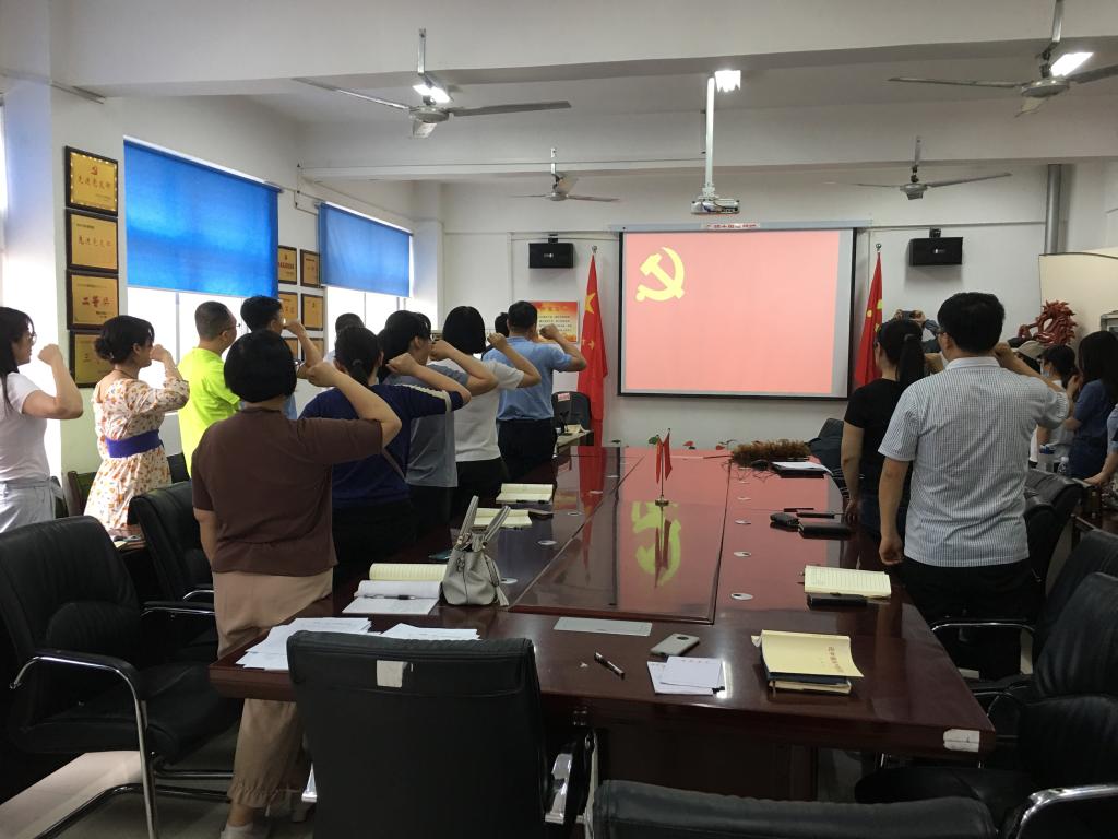 首先,党员同志们佩戴党员徽章,高举右拳,在李林同志的领誓下,铿锵有力地重温入党誓词。按照活动议程,过政治生日,自觉缴纳6月份党费,并通报党员5月份积分情况,完成经典诵读。
