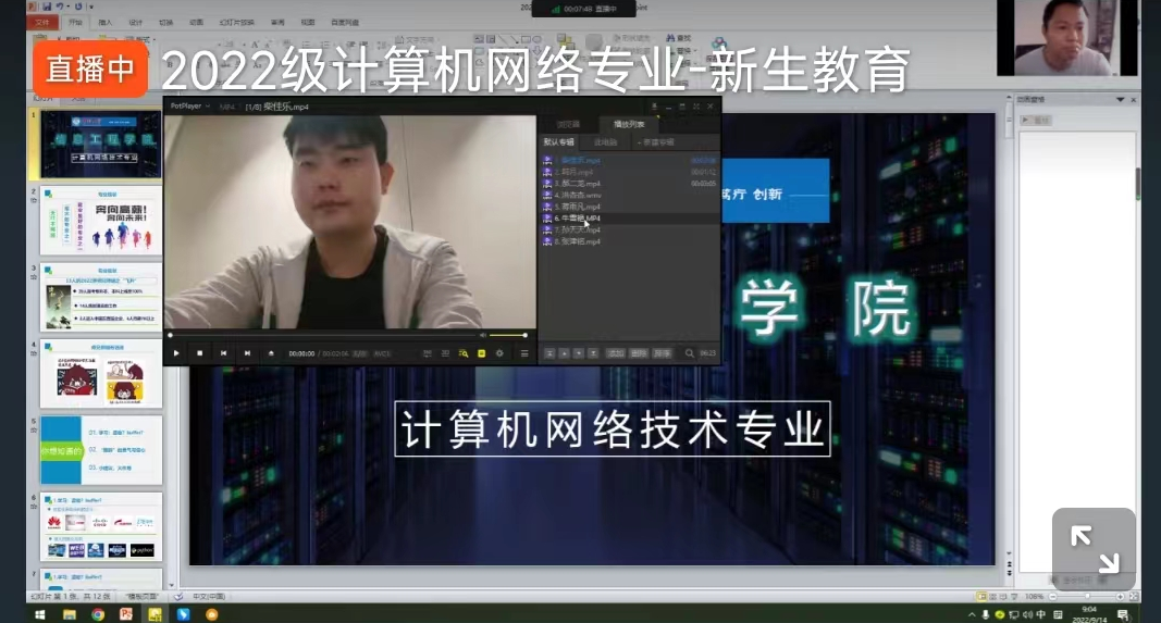 本站讯 为了让 2022 级新生更好更快地适应大学的学习,完成角色转换,开启大学生活,实现疫情防控和教学活动两不误。9月14日上午,信息工程学院各专业通过钉钉、腾讯等平台召开了“2022级新生专业教育”线上见面会,院长张新成、副院长李响、副院长王晓婷及各专业教研室主任分别参与了本次线上专业教育见面会。