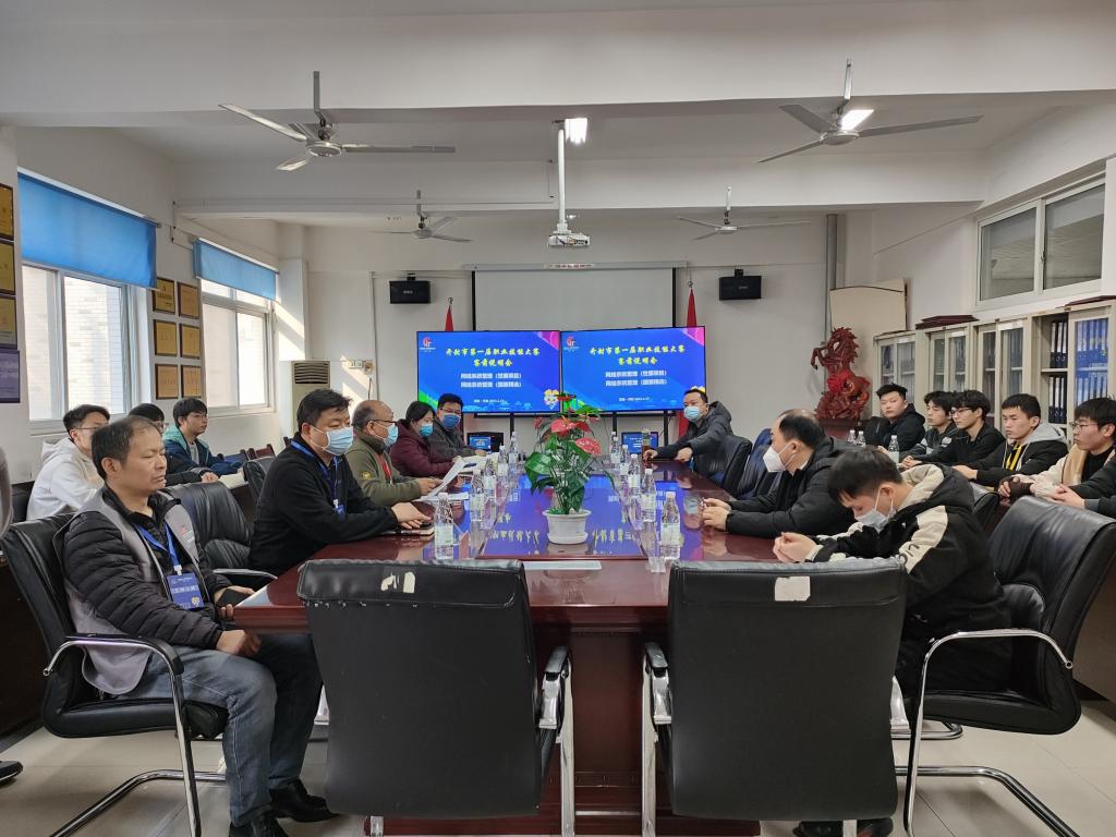 本站讯 为确保开封市第一届职业技能大赛顺利进行, 2月27日下午,信息工程学院在3号楼312会议室组织召开赛前说明会。世赛项目裁判长张新成教授、国赛精选项目裁判长曹建春教授出席会议,各赛项裁判、参赛选手及技术支持参加会议。会议由裁判长张新成教授主持。