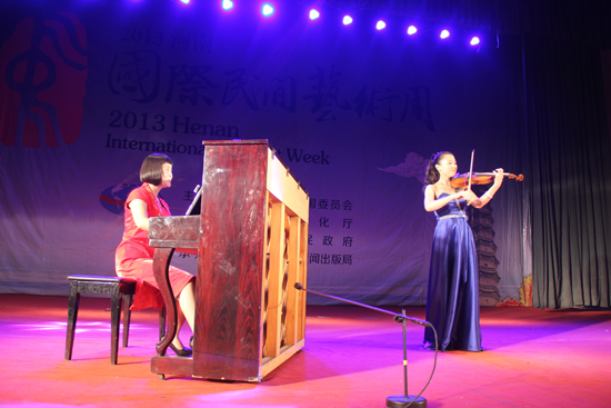 以“和谐世界、欢乐中原”为主题的“2013河南国际民间艺术周”由世界国际民间艺术节组织理事会(简称CIOFF)中国委员会、省文化厅主办,旨在促进和推广各国传统的文化和民间艺术,全面展示中原文化魅力与风采。启动仪式演出中,来自埃及、斯洛文尼亚、土耳其、孟加拉等四个国家的民间艺术团体与开封市民间艺术团体共同将金松礼堂变成了艺术的海洋,艺术家们身着各式各样的民族服装,表演异彩纷呈,土耳其尖端大师的刀盾舞、埃及的棍舞、孟加拉的火舞、斯洛文尼亚的民族舞蹈,为现场观众呈现了一场视觉盛宴。bat365在线官方网站教师以器乐合奏的形式,为观众奉上了家喻户晓、享誉世界的民族经典之作《梁祝》,赢得阵阵掌声。
