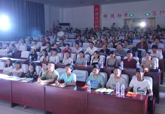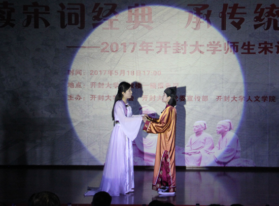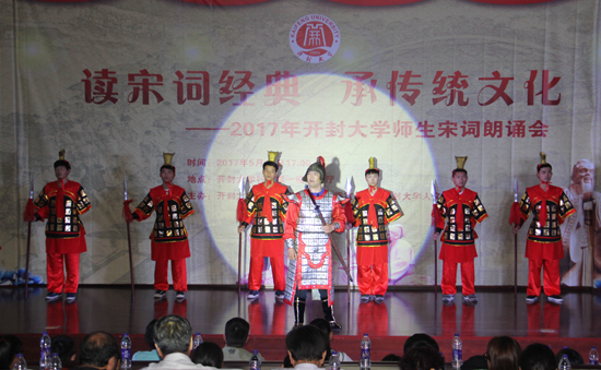 本站讯 5月18日,我校在行政楼一楼报告厅举行了“读宋词经典、承传统文化”大型师生宋词朗诵会。此次活动由我校工会、党委宣传部、人文学院共同举办。开封市总工会副主席戴国胜、开封市总工会文教卫工会主任李汴军、河南工会日报开封记者站站长刘长征,我校校领导储建新、成芳、李治出席了朗诵会,校党委宣传部、人文学院、学报编辑部和各分工会负责人以及师生代表参加了朗诵会。