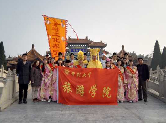 本站讯 4月1日上午,2017年中国(开封)清明文化节踏春巡游活动在我市精彩上演,我校旅游学院选拔组织了20名学生代表参加了此次巡游活动。
