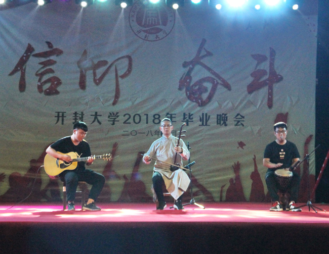 由第十九届校园歌手大赛冠军带来的二胡独奏《战马奔腾》奏出了即将穿上军装走进军营和奔赴边疆志愿服务的毕业生们的雄雄壮志。