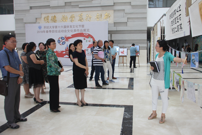 前期,学校精心筹备比赛,全校学生积极参与。校党委副书记储建新和校工会主席成芳多次召开会议布置相关工作,并现场指导评审。搜集的作品经过体育委员会专家评审,学校领导审批,共评出美术、书法、动漫、征文和摄影5个类别共计100余幅获奖作品。艺术设计学院和人文学院全力配合,共同做好获奖作品布展工作,作品以弘扬体育精神和展现开封文化为主题,立意新颖,主题突出,技艺精湛,惟妙惟肖,吸引全校师生驻足观看。参展作者用翰墨丹青展现了开大学子奋发进取的精神风貌,弘扬了勇于创新、敢于担当的意志品质。