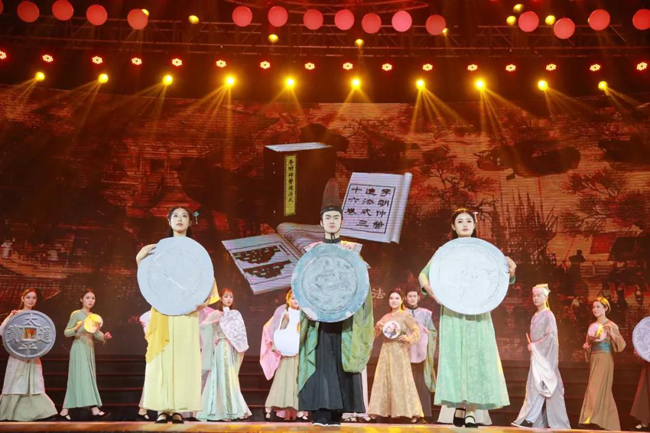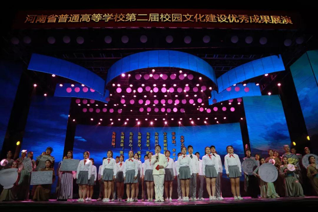 颁奖仪式上,我校的《文化育人 推崇创新——bat365在线官方网站博物馆文化育人平台建设结硕果》项目荣获河南省高等学校校园文化建设优秀成果一等奖,学生处处长孙勇代表学校上台领奖。我校依据此次获奖成果内容与安阳工学院共同表演了节目《讲述——家·国》。