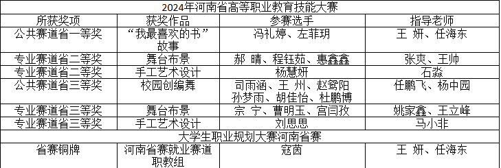我院学子凭借扎实的专业知识和出色的技能水平,在公共赛道和多个专业赛道上均取得了优异成绩。在河南省高等职业教育技能大赛中,我院学子力压群雄,获得省一等奖一项,省二等奖两项、省三等奖三项。大学生职业规划大赛河南省赛获铜牌。具体名单如下,在在此类比赛中我院所报参赛团队的获奖率达到了惊人的100%。这不仅是对我院教学水平的肯定,也是对我院学子勤奋学习和不懈努力的最好证明。