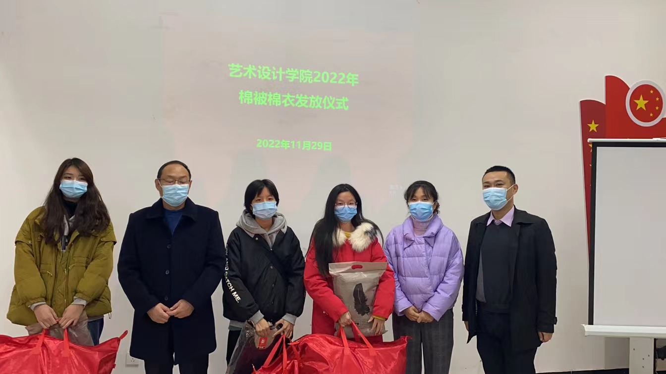 本站讯 11月28日上午,艺术设计学院在9号楼209会议室举行了冬季爱心资助棉被棉衣发放活动。艺术设计学院党总支书记赵志成、院长张富云、副书记王龙、团总支书记孙巳尧、全体辅导员及22名国家助学金A类新生参加了本次活动。