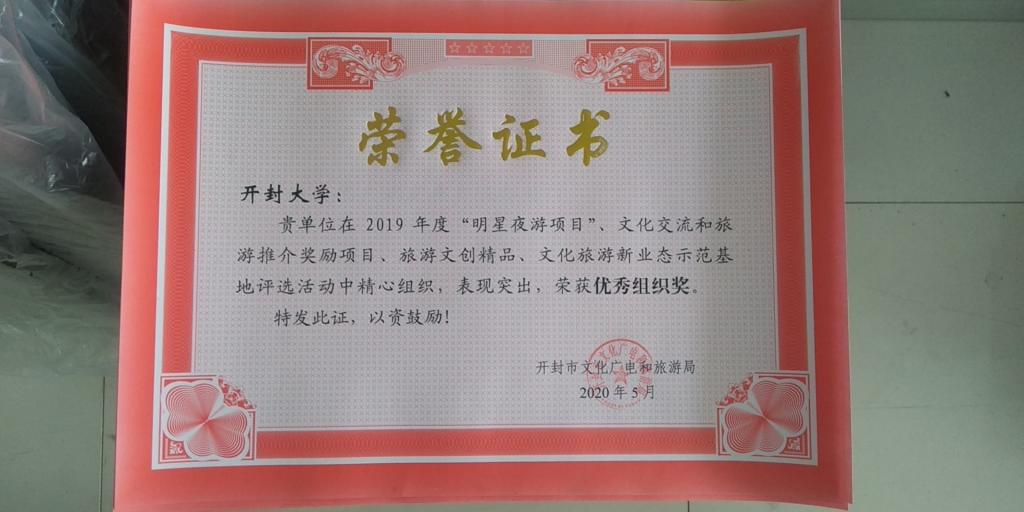 2020年6月,由开封市文化广电和旅游局 开封市财政局主办的关于开展开封旅游文创精品评选活动中,我院艺术设计专业教研室全体老师和学生设计与制作了包括陶艺、仿古宋画、版画藏书票、剪纸、装饰绘画等10件宋文化文化创意作品入围。bat365在线官方网站被评为优秀组织奖。