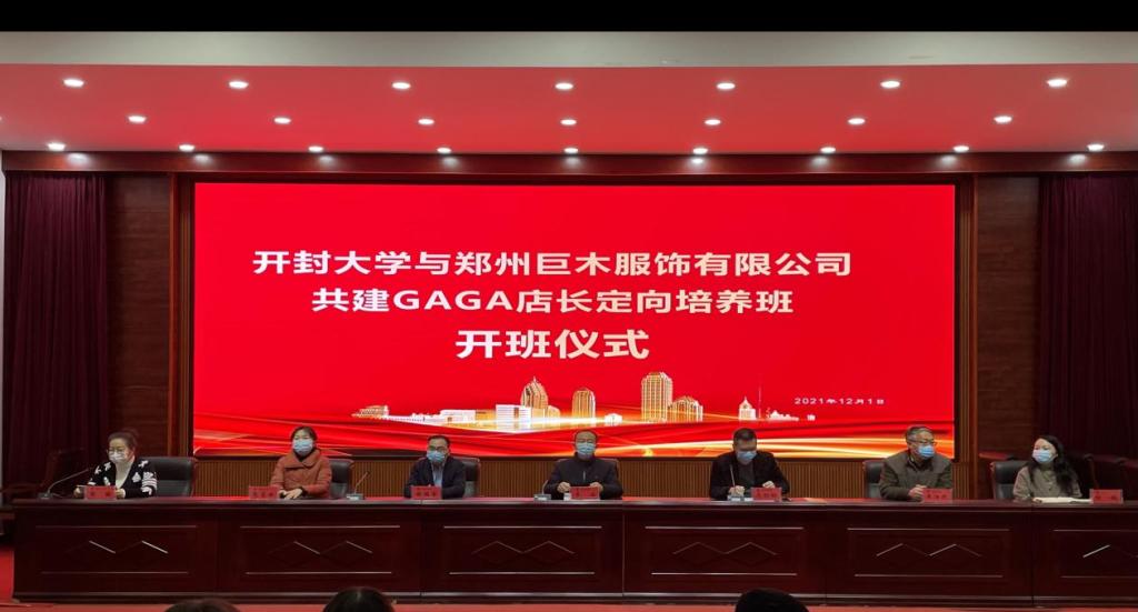 2021年12月1日,bat365在线官方网站艺术设计学院与郑州巨木服饰有限公司就共建GAGA店长定向培养班在我校行政楼会议厅举办了开班仪式。出席会议的有副校长李治、对外交流与合作处副处长刘娟、艺术设计学院党委书记王江然、艺术设计学院院长张富云、艺术设计学院副院长袁颖以及郑州巨木服饰有限公司人力资源总监危劲松、副总监徐照军以及21级服装与服装专业学生以及服装教研室全体教师。