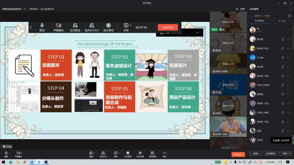 本次线上答辩使用钉钉视频会议平台,参加答辩的本专业学生共60人,根据毕业设计分组情况按顺序进行。鉴于2019年已经有过一次线上答辩的经验,在本次答辩开始前2天,就由各毕业设计指导老师任负责将答辩形式、答辩流程、答辩注意事项等提前通知学生,帮助学生熟悉线上答辩操作。答辩过程中纪律严明,公平公正,师生交流顺畅,进展顺利。