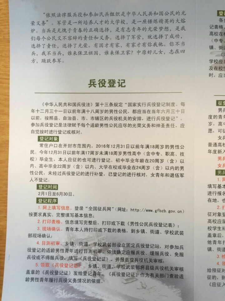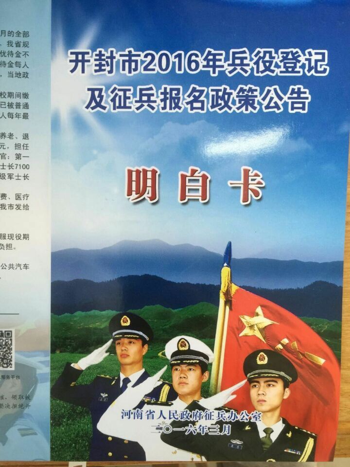 开封市2016年兵役登记及征兵报名政策公告