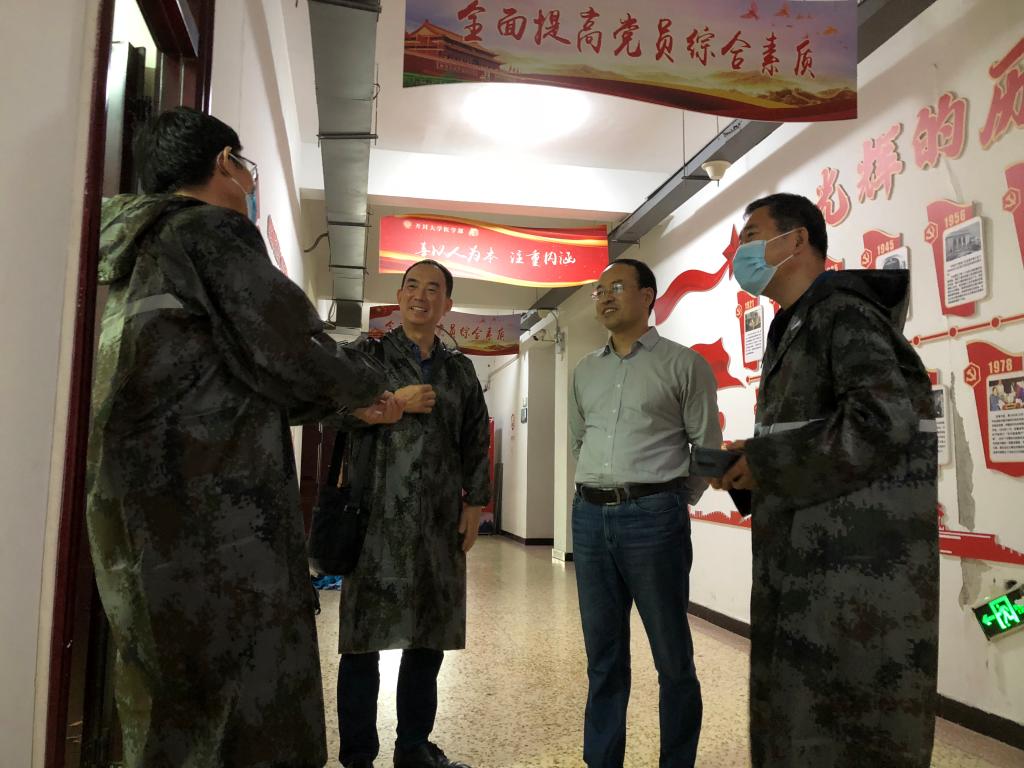 报到期间,bat365在线官方网站党委委员、卫校党委书记曾小平,bat365在线官方网站党委委员、卫校校长谢文忠分别到bat365在线官方网站北门、医学部教学楼检查指导工作,仔细询问了医学部学生报到情况,叮嘱报到过程中要注意的细节,并嘱咐工作人员和志愿者阴雨天气穿好雨具,注意防寒保暖。随后,卫校副校长谢旭光带领医学部学生工作人员实地深入学生宿舍看望慰问返校学生,仔细询问学生学习、生活情况。