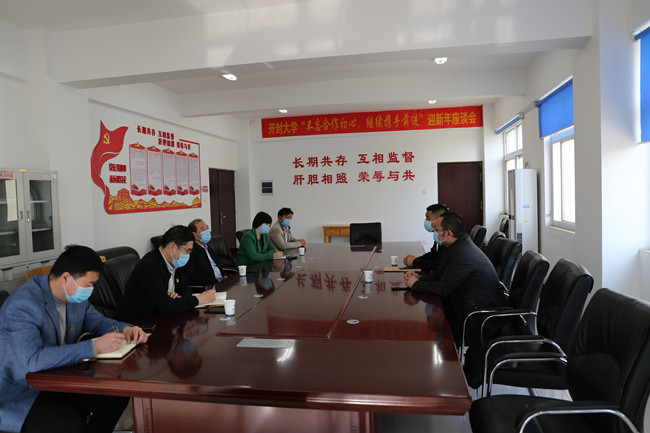 储书记代表学校对蒋主委一行来访表示欢迎,向市统一战线、中国农工民主党开封市委长期以来对我校建设发展的重视与支持表示感谢,并简要就学校建设取得的成果、学校服务地方经济社会发展情况、学校产学研及毕业生就业相关情况进行了介绍。储书记强调要通过此次调研活动,进一步深化校企合作,促进产学研融合发展。