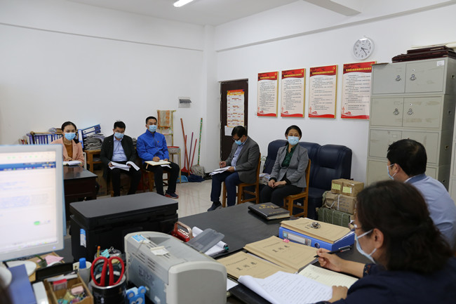 本站讯 为了解工作进展情况,结合学校实际,5月8日下午,校党委书记陈灿、纪委书记马林强带领党政办公室、纪委相关人员到党委组织统战部、人事处开展督查督办工作。此次督查主要围绕疫情防控工作开展、巡察整改工作推进、年度十项重点工作落实三个方面进行。