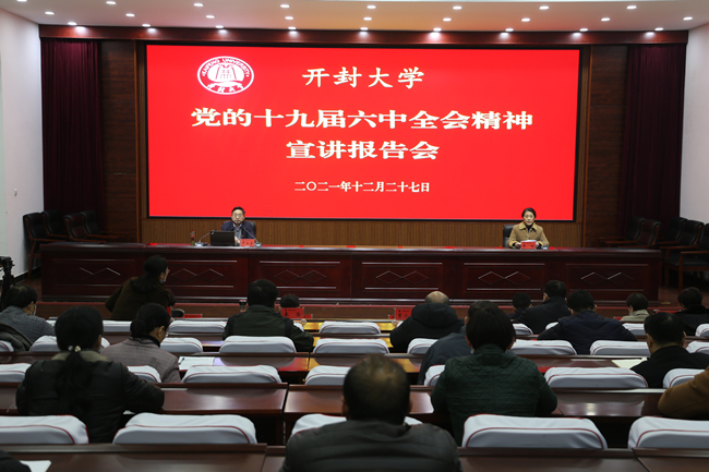 本站讯 为开展好党的十九届六中全会精神的宣讲与解读,使党的创新理论最新成果融入高校思想政治工作、贯穿教育教学全过程,引导师生从党的百年奋斗历程中汲取智慧和力量,12月27日下午,我校在行政楼第一会议厅举行党的十九届六中全会精神报告会。省委宣讲团成员,河南牧业经济学院党委副书记、校长罗士喜教授作宣讲报告。报告会由校党委书记陈灿主持。