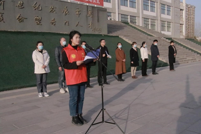 校学生会执行主席李梦同学宣读倡议书并带领全体志愿者共同宣誓