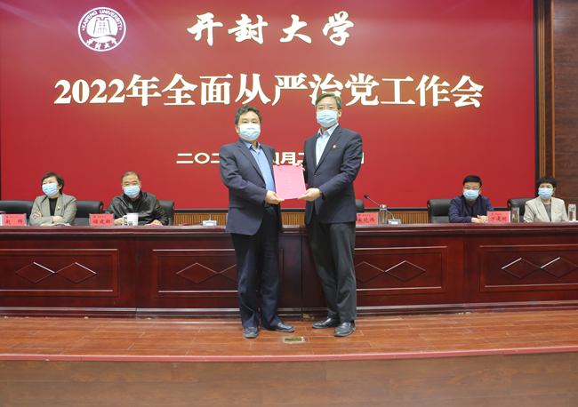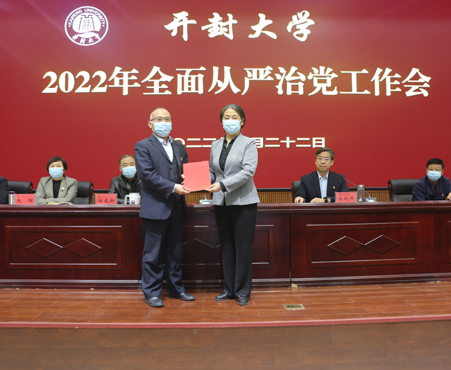 随后,各院部党总支书记、院长和部分职能部门负责人分别向校党委书记陈灿、校长宋晓炜递交了《落实全面从严治党工作目标责任书》《落实意识形态工作责任书》《2022年度目标责任书》《2022年平安校园建设目标责任书》。