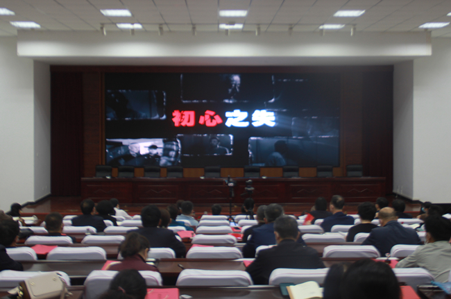 会前,全体与会人员共同观看党风廉政教育警示片《初心之失》。