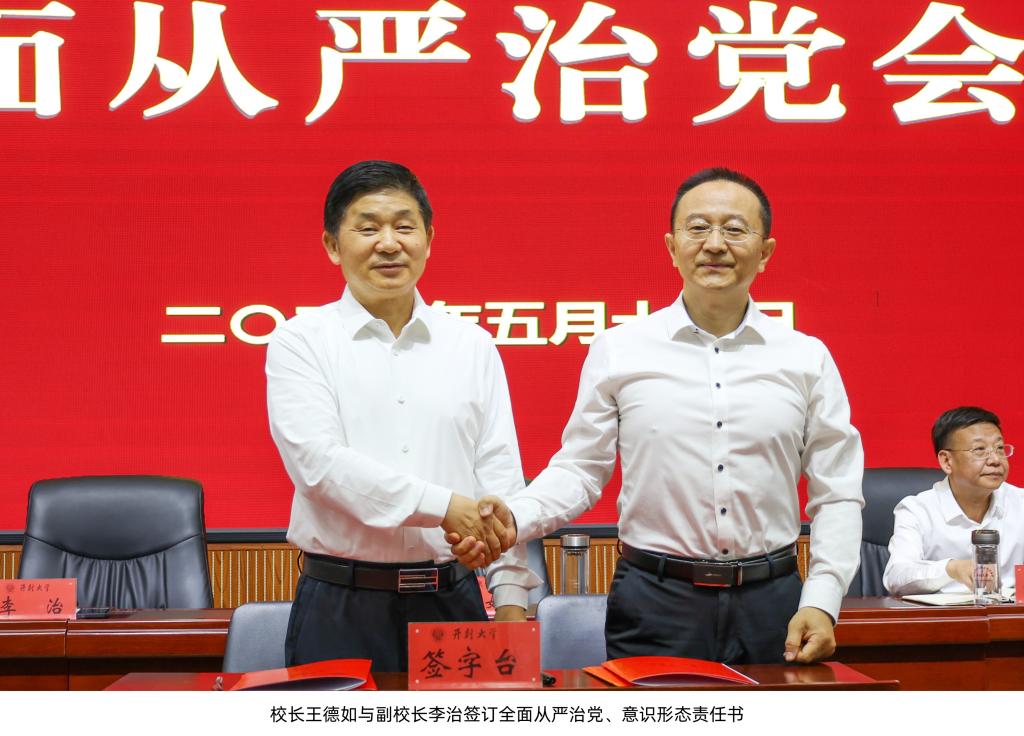 校纪委书记石超亭安排部署了2025年纪检监察工作校党委副书记张合要求,要提高站位,强化责任,优化作风,狠抓落实。会上,王德如与校领导班子成员现场签订了全面从严治党、意识形态责任书,各院、部负责人向校长递交了年度目标任务责任书。